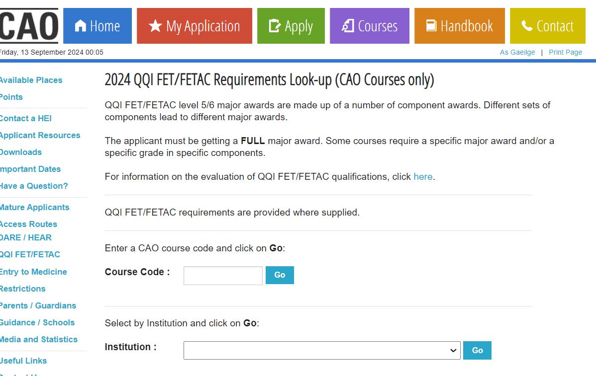 https://www.cao.ie/courses.php
