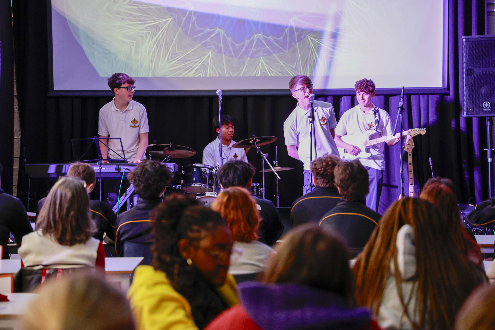 DFEi Sound Department were delighted to have Second level students from Clonkeen College, North Wicklow Educate Together Secondary School and Sandymount Park perform this lunchtime as part of our Live Music Sessions. This annual event is an opportunity for young local musicians to perform in front of a live audience and a chance for our own sound engineering students to manage all the sound and stage set up. A thoroughly enjoyable lunchtime experience for all the audience.